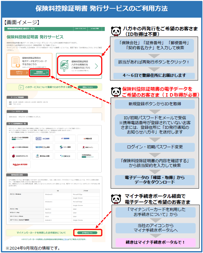 ・保険契約初年度の場合、本年1月以降に作成された証券に添付されている控除証明書もハガキでの再発行や電子データでの取得が可能です。